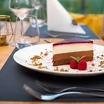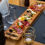 Jeden Morgen wird im Hotel ein einfaches Frühstück serviert. Die Gäste werden in das hauseigene Restaurant Kozjanski dvor eingeladen, um sich kulinarisch verwöhnen zu lassen. Man kann sich in der Terrassen- Bar bei einem Lieblingsgetränk entspannen. Der Barbereich verfügt über Terrassen- und eine Lounge.